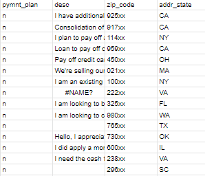 desc(부가설명), zip_code(우편번호),add_state(거주 주)등의 변수는 채무 이행과 상관이 없으므로 '무시함'으로 설정합니다.